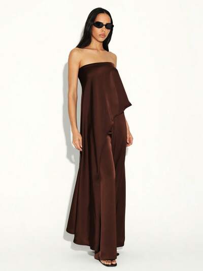 KSTM Strapless Asymmetric Drape Top For Women Elegant Brown Tube Top Evening Party Blouse Fall Winter Fashion-35%