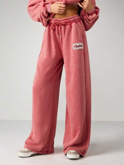 Missguided x Playboy Wide Leg Washed Sweatpants With Drawstring-40%