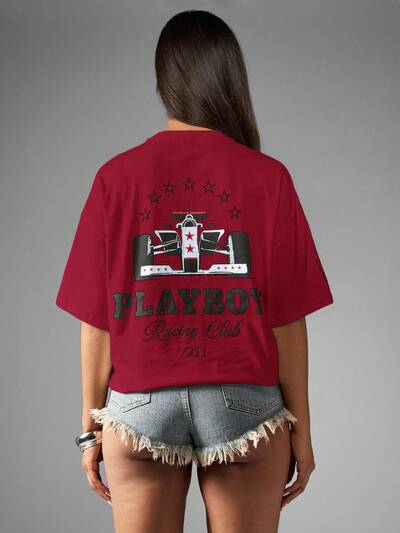 Missguided x Playboy Oversized T Shirt With Front And Back Racing Graphics-25%