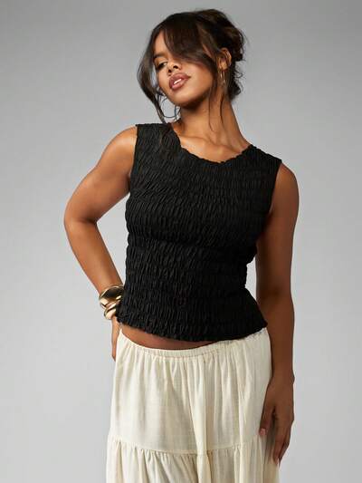 MISSGUIDED Shirred Smocked Ruched Sleeveless Tank Top-40%