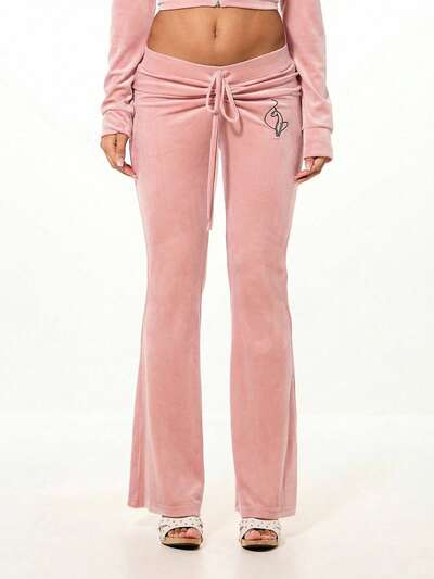 BABYPHAT Women's Ruched Velour Drawstring Flare Sweatpants With Heart Print Detail Comfortable Lounge Pants Fall Winter-10%