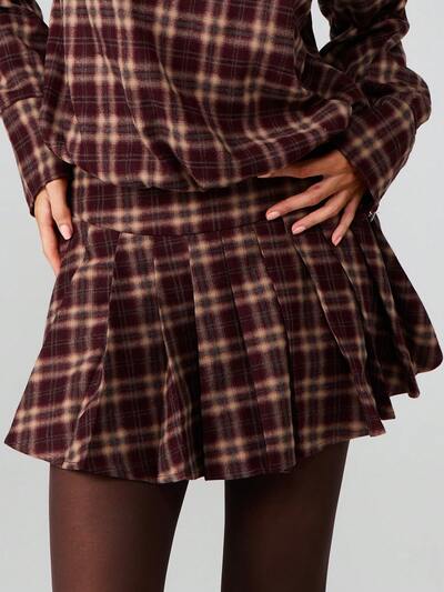 MISSGUIDED Burgundy Plaid Check Pleated Mini Skirt-50%