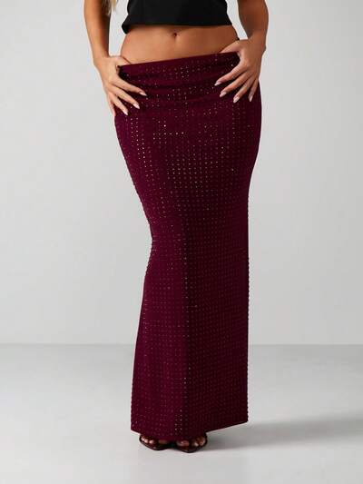 MISSGUIDED Rhinestone Studded Bodycon Maxi Skirt-50%