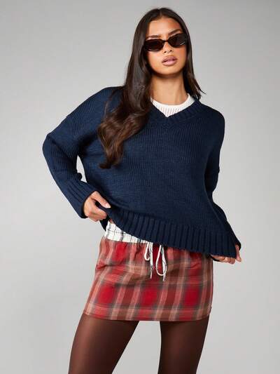 MISSGUIDED Check Print Tie Mini Skirt-10%