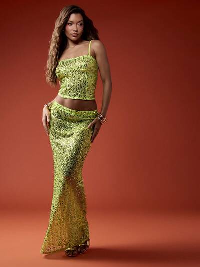 MISSGUIDED Designer Sequin Maxi Mermaid Fishtail Skirt Christmas-50%