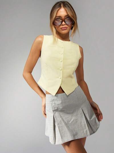 MISSGUIDED Classic Box Pleat Tartan Check A-Line Mini Skirts-45%