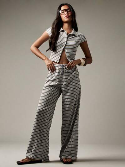 MISSGUIDED Striped Button Through Crop Top And Palazzo Pants Set-40%