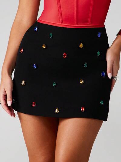 MISSGUIDED Mini spódniczka z kolorowymi ozdobami z klejnotów