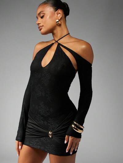 MISSGUIDED Sukienka z długim rękawem i wycięciem na szyi, z kółkiem