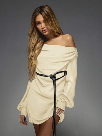 MISSGUIDED Sukienka mini z odkrytymi ramionami, drapowana, z długim rękawem, dopasowana, elegancka i modna-50%