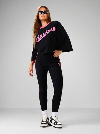 Missguided x Playboy Komplet: Top z krótkim rękawem i legginsy z wysokim stanem