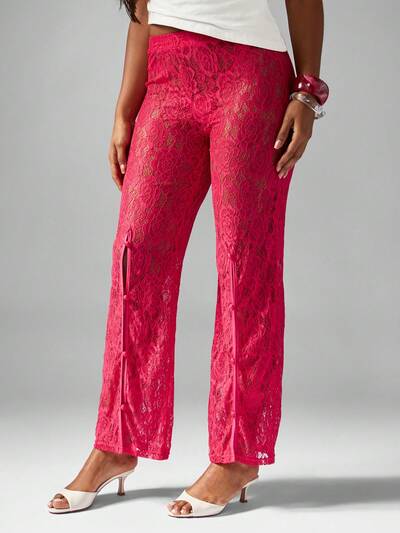 SUMWON WOMEN Okrycie plażowe Siatkowe spodnie cargo Szerokie nogawki Ściągacz w pasie Letnie wakacje Ubrania kurortowe Impreza przy basenie Lounge Spodnie wciągane-50%