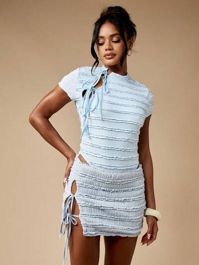 MISSGUIDED Teksturowana mini spódniczka z wycięciami i sznurowanym wzorem