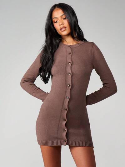 MISSGUIDED Mini sukienka z prążkowanej dzianiny z guzikami z przodu
