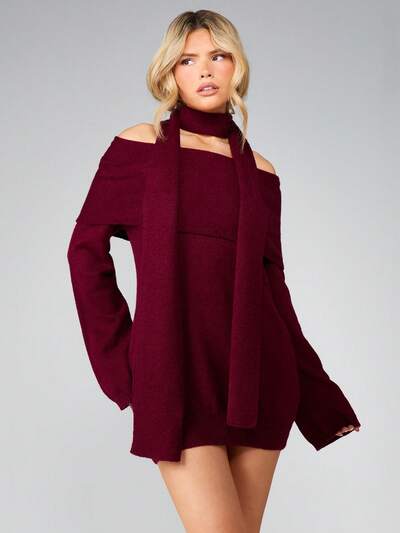 MISSGUIDED Sukienka sweterkowa z grubej dzianiny z golfem i szalikiem