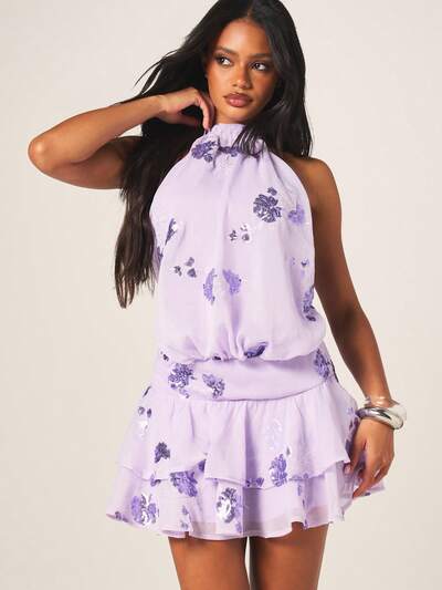 MISSGUIDED Sukienka mini z falbanką i dekoltem halter w kwiaty