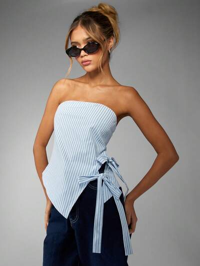 MISSGUIDED Top typu bandeau w paski bez ramiączek z boczną kokardą, krótki, damski
