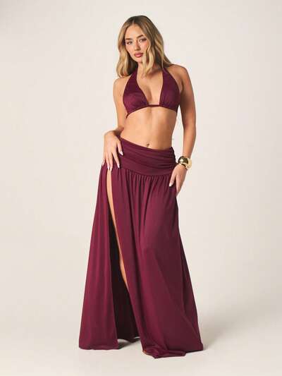 MISSGUIDED Komplet z topem typu halter i spódnicą z rozcięciem po boku-10%