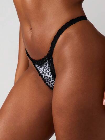 MISSGUIDED Stringi z siateczki z nadrukiem w panterkę i wysokim wycięciem