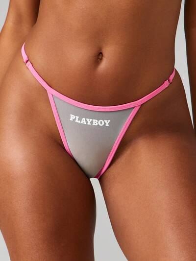 Missguided x Playboy Majtki stringi z nadrukiem króliczka i logo królika