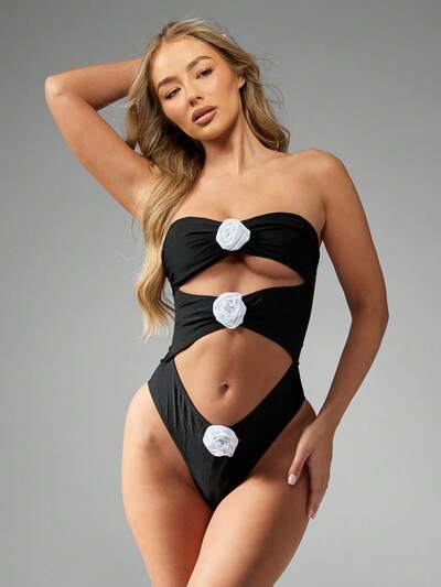 MISSGUIDED Jednoczęściowy kostium kąpielowy typu bandeau z wycięciem w kształcie pierścienia i wysokim stanem-55%