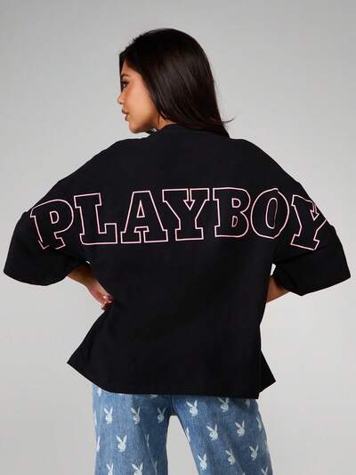 Missguided x Playboy Luźna koszulka z długim rękawem i grafiką-30%