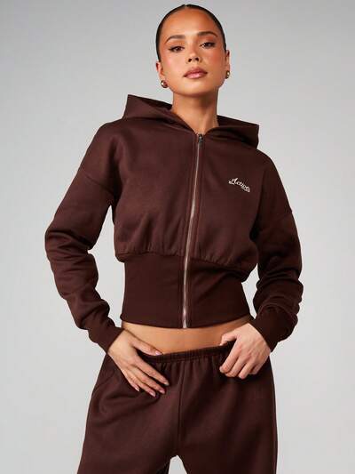 MISSGUIDED Bluza z kapturem zapinana z przodu na zamek i haftowanym logo-15%