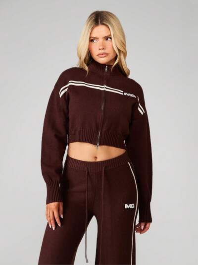 MISSGUIDED Krótki kardigan w paski z dzianiny zapinany na guziki i ściągaczem w stylu świątecznym-55%