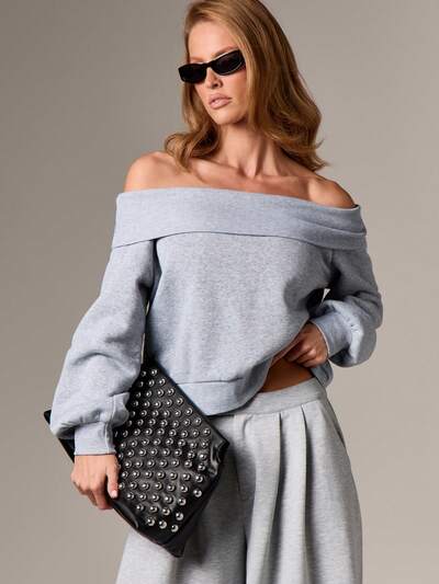 AiiRZ Bluza Bardot z odkrytymi ramionami, obszernym kołnierzem i długimi rękawami zapewniającymi swobodny komfort