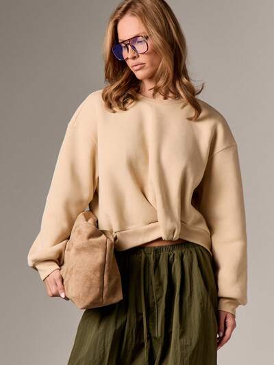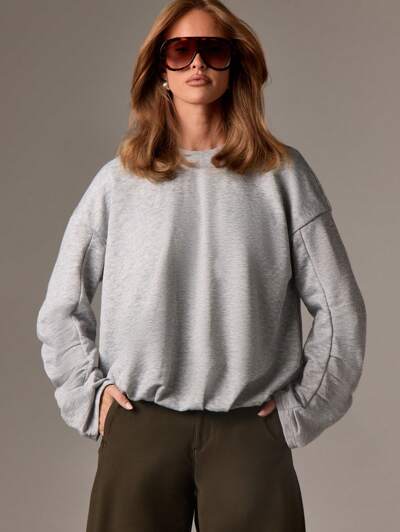 AiiRZ Luźna bluza z okrągłym dekoltem i zakładkami u dołu, długi rękaw, swobodny sweter na jesień i zimę, przytulny i wygodny