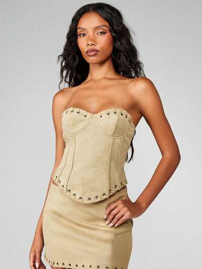 MISSGUIDED Gorset sznurowany, aksamitna spódnica mini, dwuczęściowy strój-55%