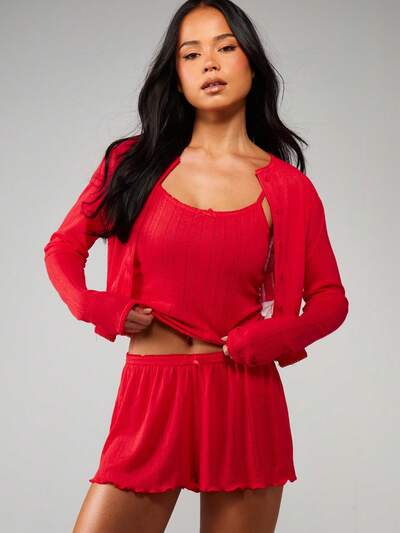 MISSGUIDED Zestaw: kardigan i szorty z dzianiny pointelle z okrągłym dekoltem