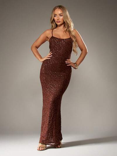 MISSGUIDED Sukienka maxi z odkrytymi plecami i koronką, z cekinami i cienkimi ramiączkami