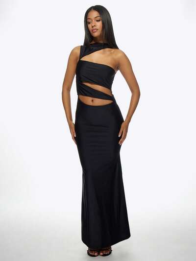 MISSGUIDED Asymetryczna sukienka maxi z jednym rękawem i wycięciami