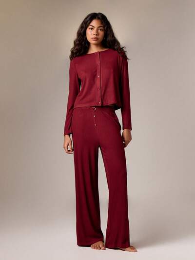 AiiRZ Świąteczny komplet piżamowy z prążkowanym zapięciem na guziki z przodu, kardigan z długim rękawem, spodnie z szerokimi nogawkami, odzież domowa do spania-50%