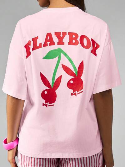 Missguided x Playboy Luźna koszulka z motywem wiśni-35%