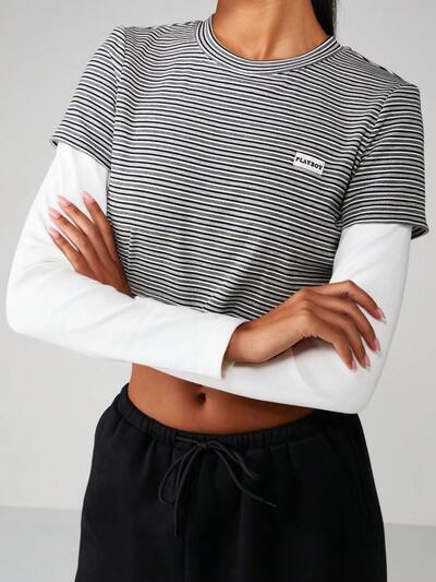 Missguided x Playboy Koszulka w paski, wielowarstwowa, z długimi rękawami