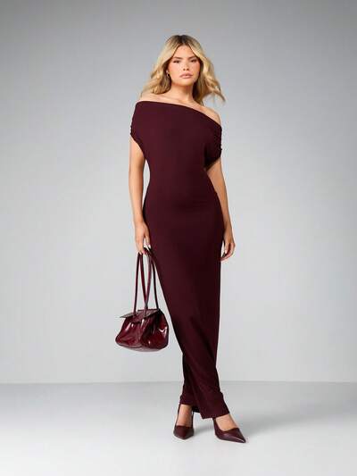 KIZN Sukienka maxi z gorsetem, marszczeniami, dekoltem w serduszko, sznurowaniem i rozcięciem z boku, wieczorowa, formalna, dopasowana