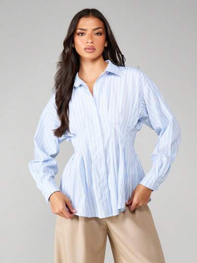 MISSGUIDED Koszula w paski z kołnierzykiem i plisowaną talią, zapinana na guziki