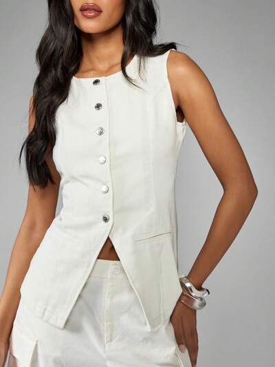 MISSGUIDED Kamizelka dżinsowa bez rękawów z guzikami z przodu