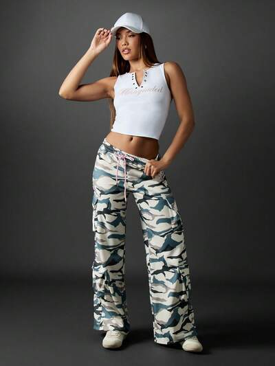 Missguided x Playboy Spodnie cargo z szerokimi nogawkami i kieszeniami bocznymi-50%