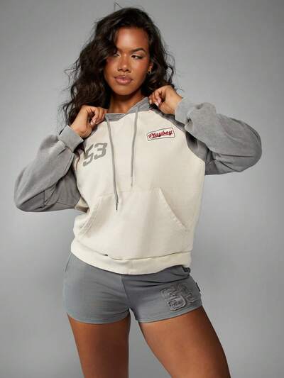 Missguided x Playboy Bluza z kapturem i zamkiem błyskawicznym w stylu sportowym z logo i numerem