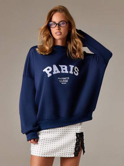 AiiRZ Bluza z nadrukiem Printempts Paris Varsity Letter w stylu uniwersyteckim, oversize, swobodny, francuski wzór, sweter, jesień, zima, odzież uliczna, styl uniwersytecki