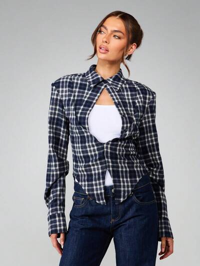 MISSGUIDED Koszula w kratkę z wycięciem z przodu