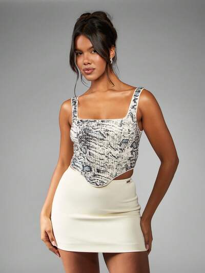 MISSGUIDED Gorsetowy top z kwadratowym dekoltem i nadrukiem węża z cekinami