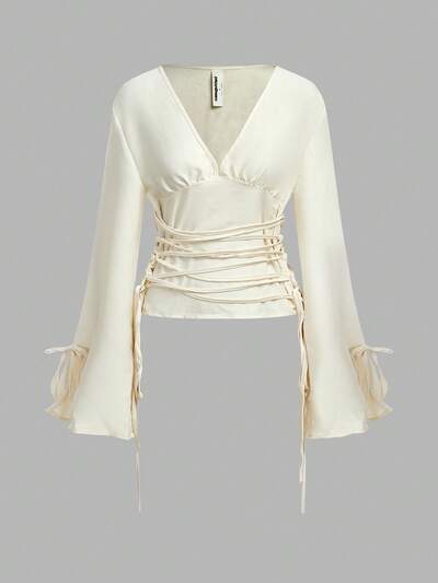 MISSGUIDED Bluzka z głębokim dekoltem i bufiastymi rękawami, sznurowana