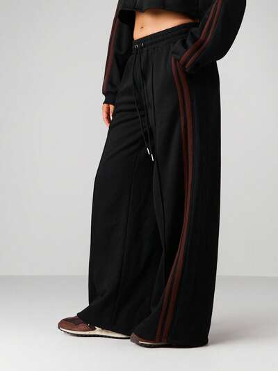 SUMWON WOMEN Melanżowe, szerokie spodnie dresowe z szerokimi nogawkami i haftowanym napisem, ze ściągaczem w pasie, damskie, na jesień i zimę