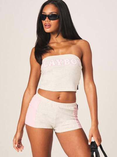 Missguided x Playboy Top typu bandeau z różowym logo-40%