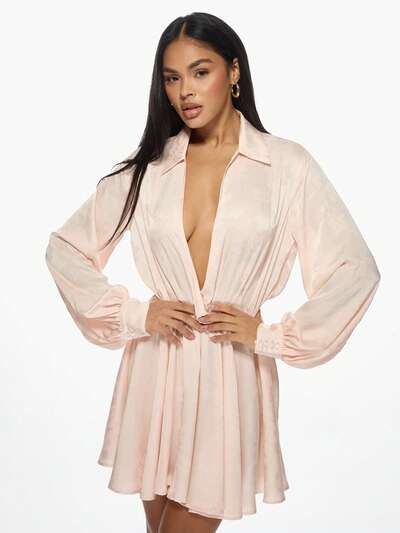 MISSGUIDED Elegancka satynowa sukienka mini z głębokim dekoltem i długimi rękawami-40%
