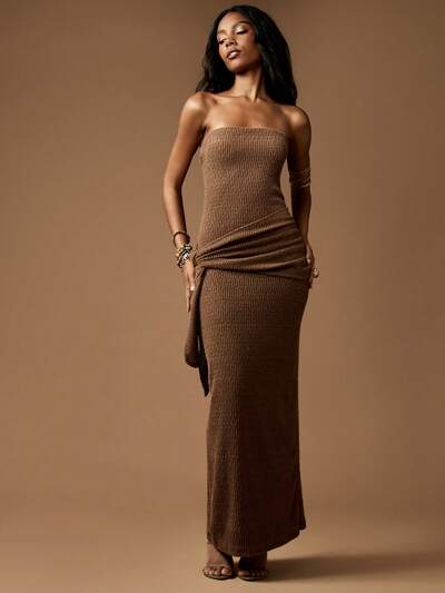 MISSGUIDED Sukienka maxi z prążkowanej dzianiny bez ramiączek i marszczeniami po bokach-40%
